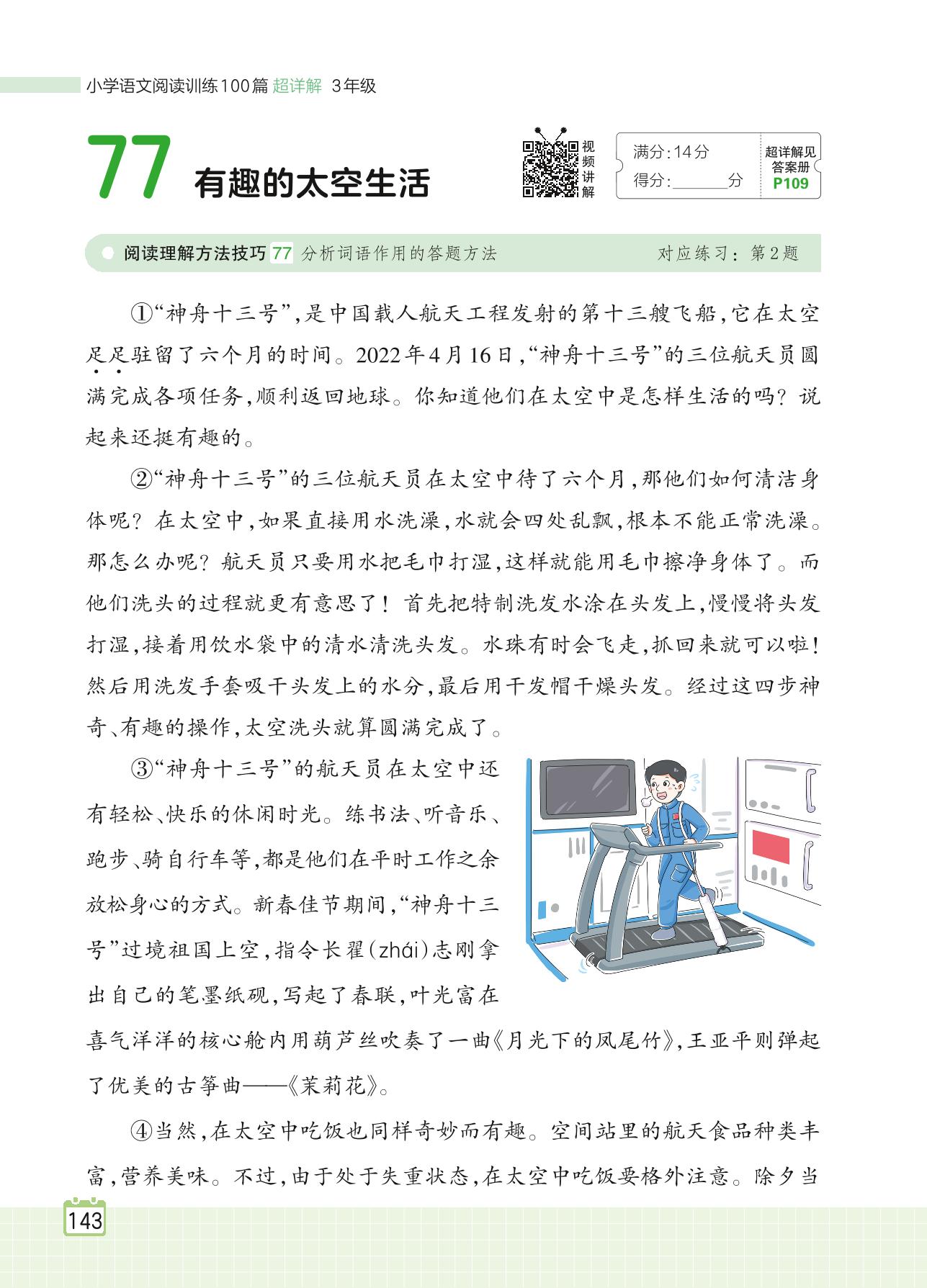 2024全一册三年级语文人教版 专题六 科普文 77 有趣的太空生活