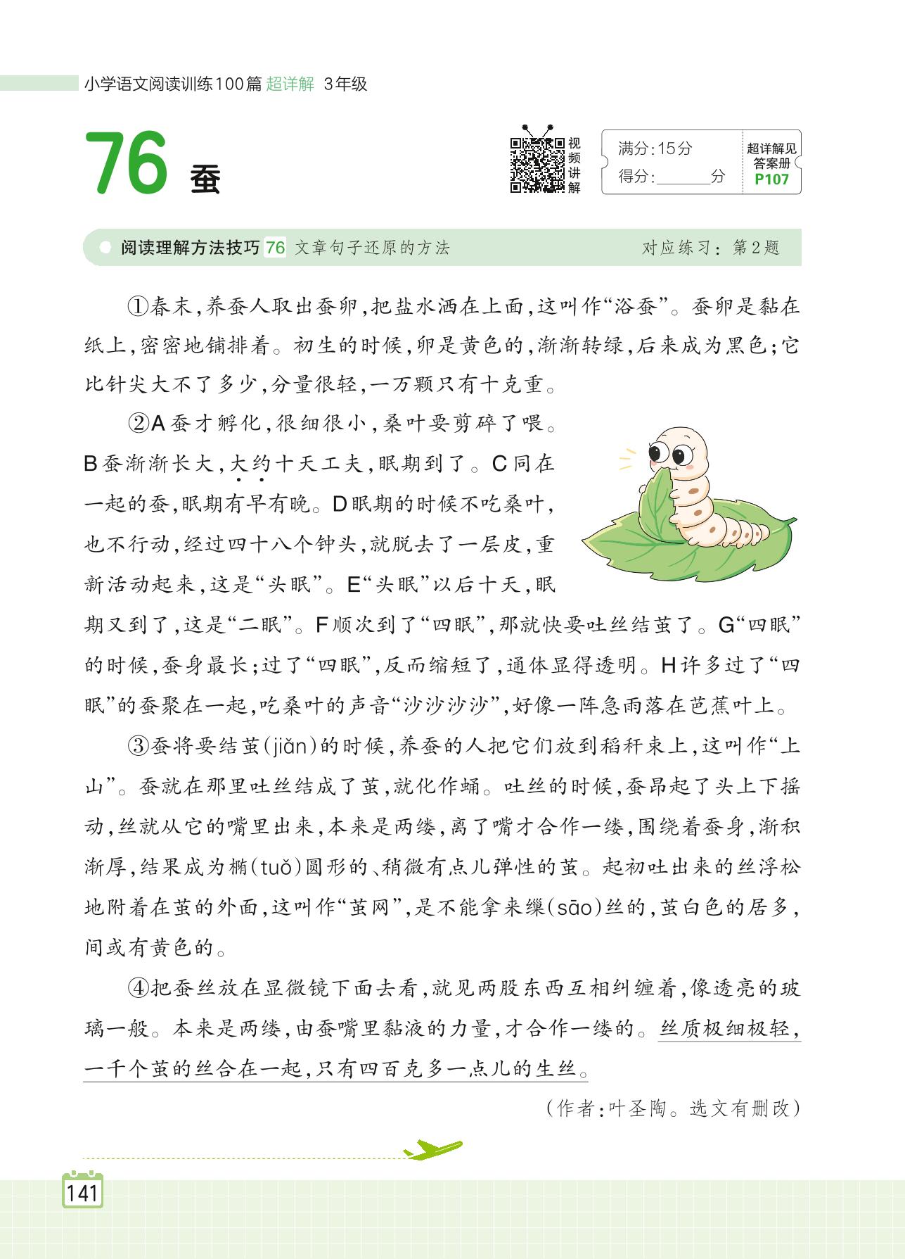 2024全一册三年级语文人教版 专题六 科普文 76 蚕