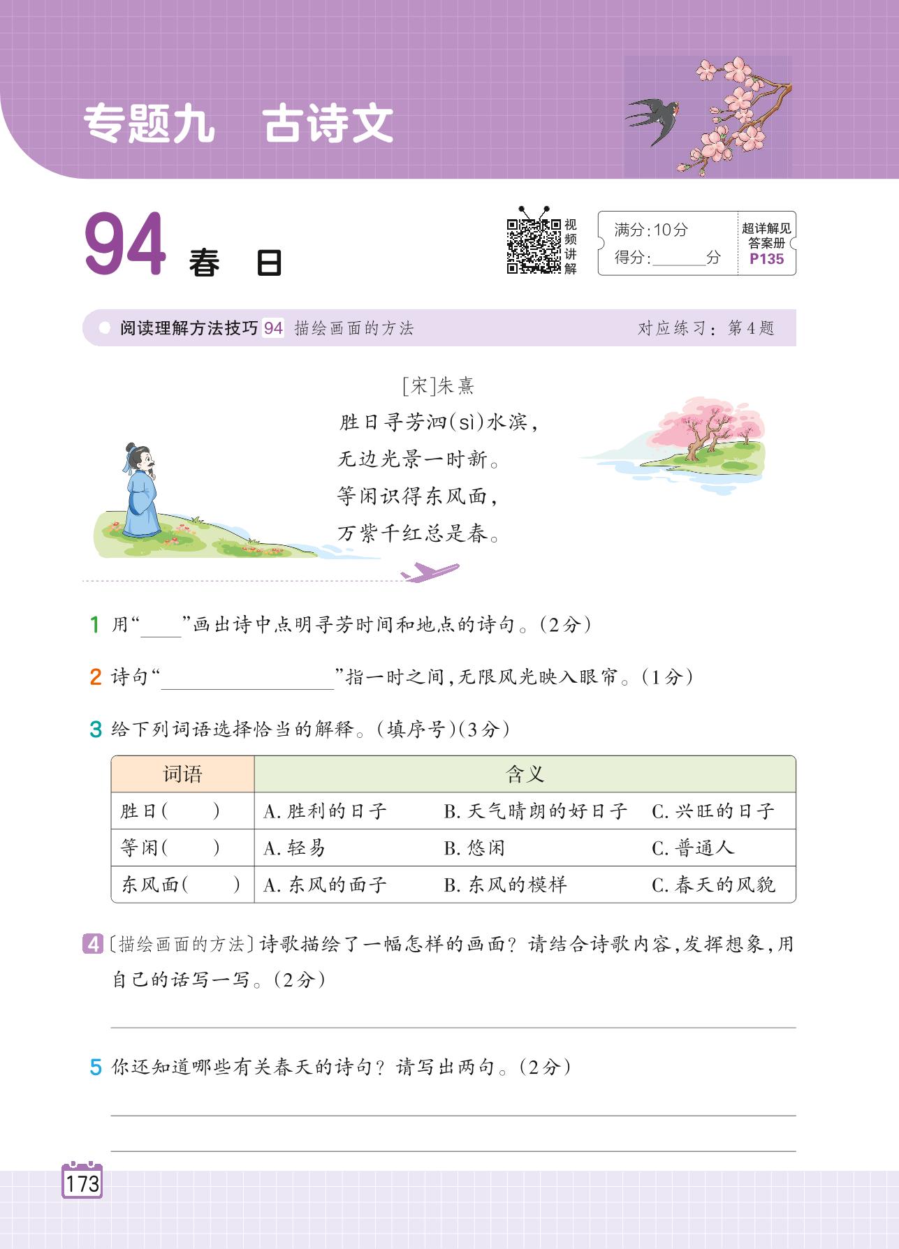 2024全一册三年级语文人教版 专题九 古诗文 94 春日