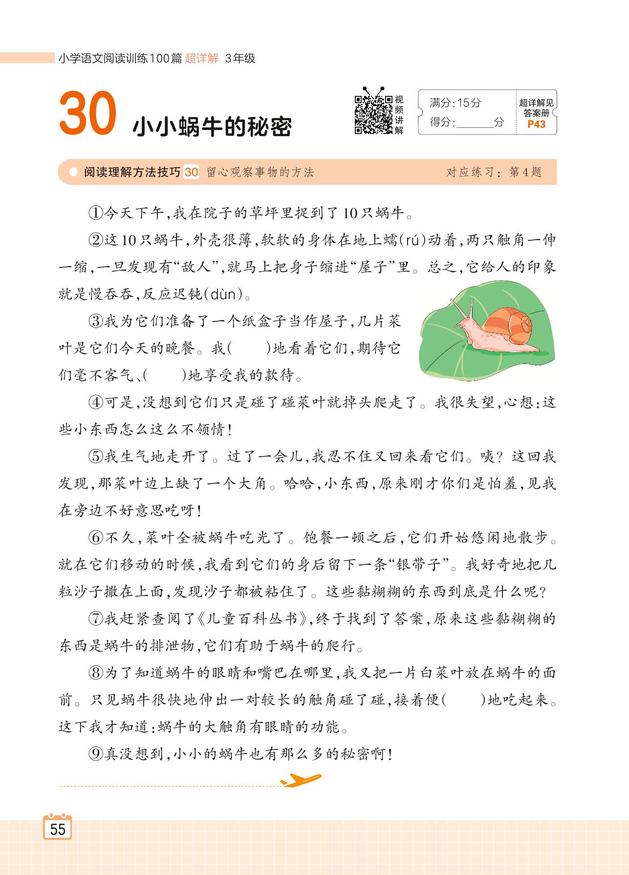 2024全一册三年级语文人教版 专题二 写事 30 小小蜗牛的秘密