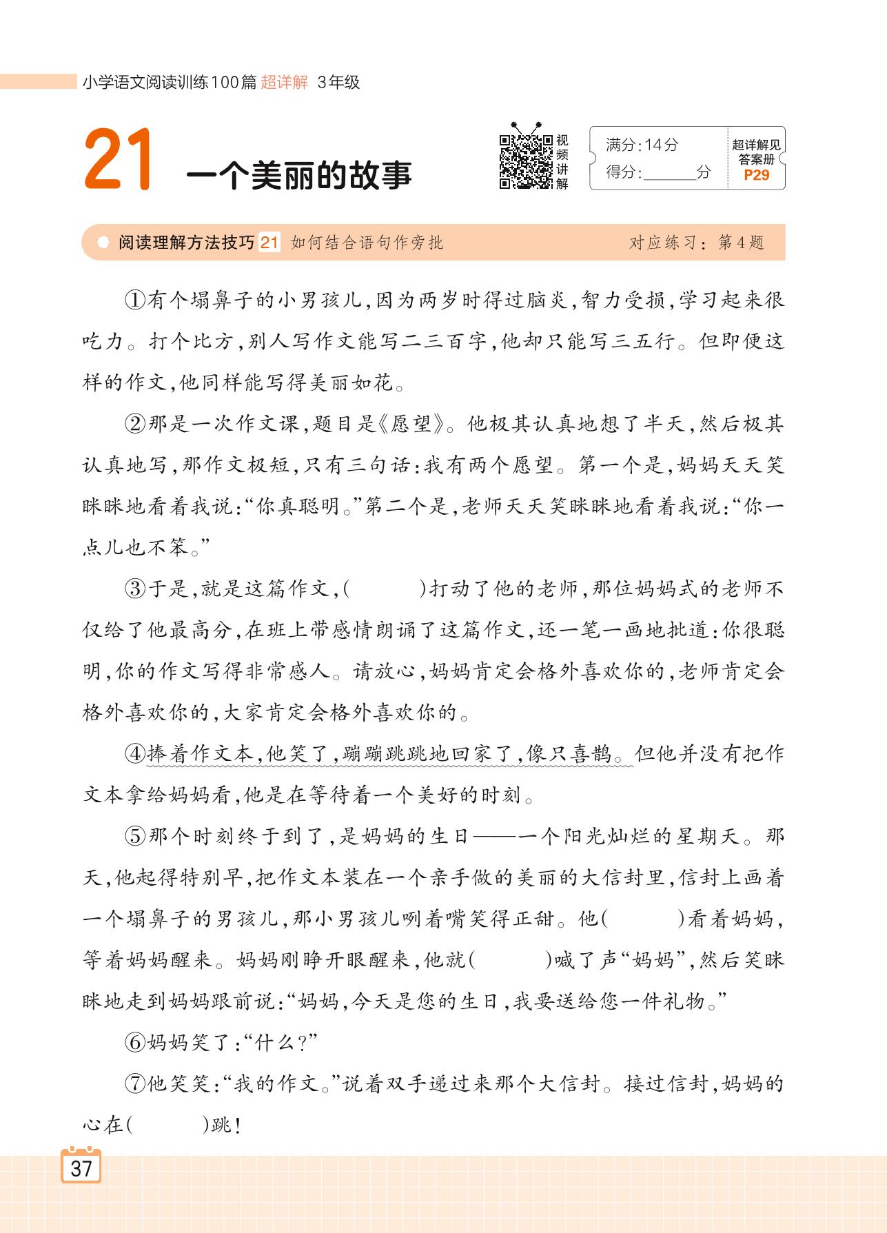 2024全一册三年级语文人教版 专题二 写事 21 一个美丽的故事