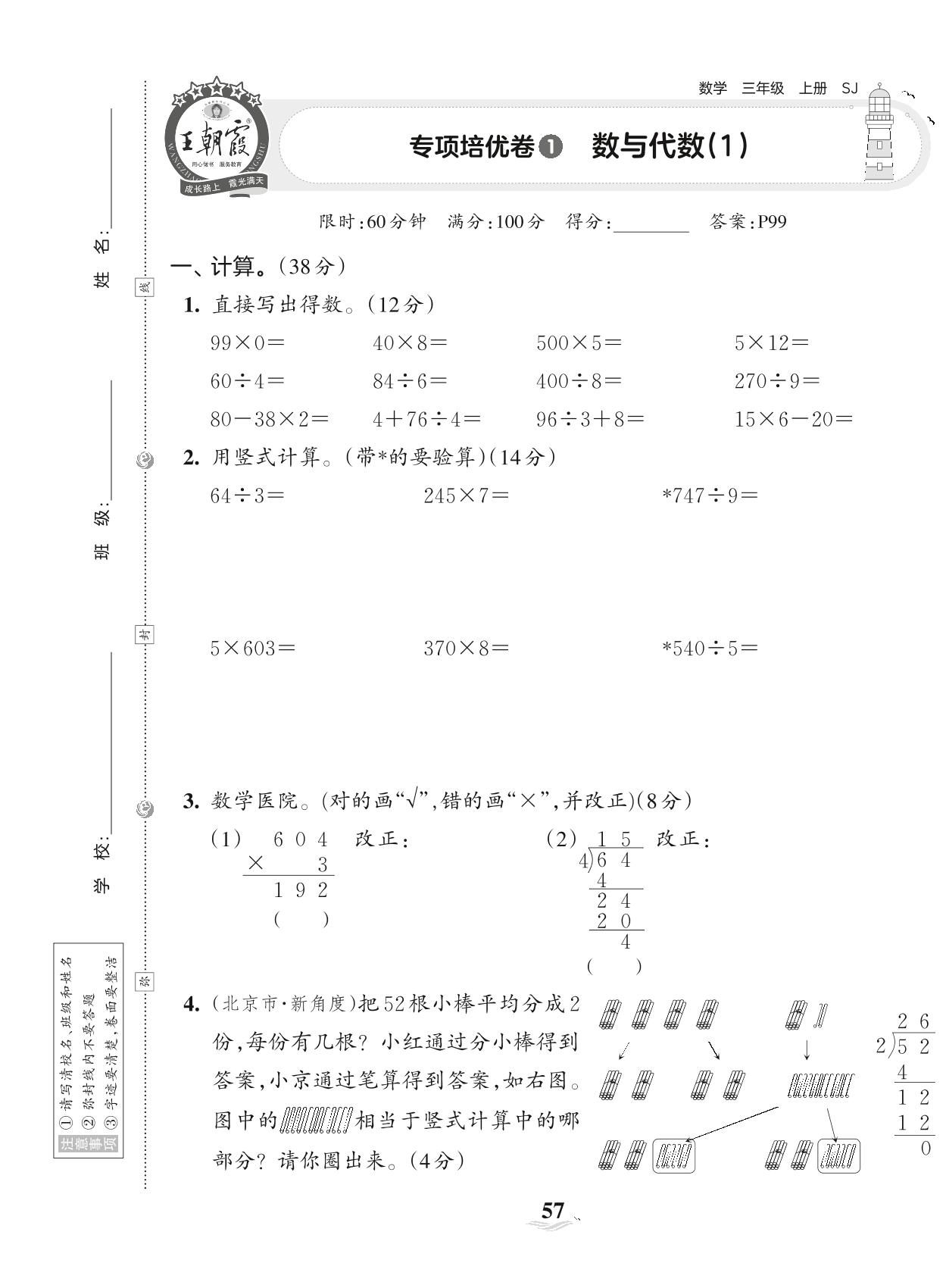 2023上册三年级数学苏教版 专项培优卷1 数与代数(1)