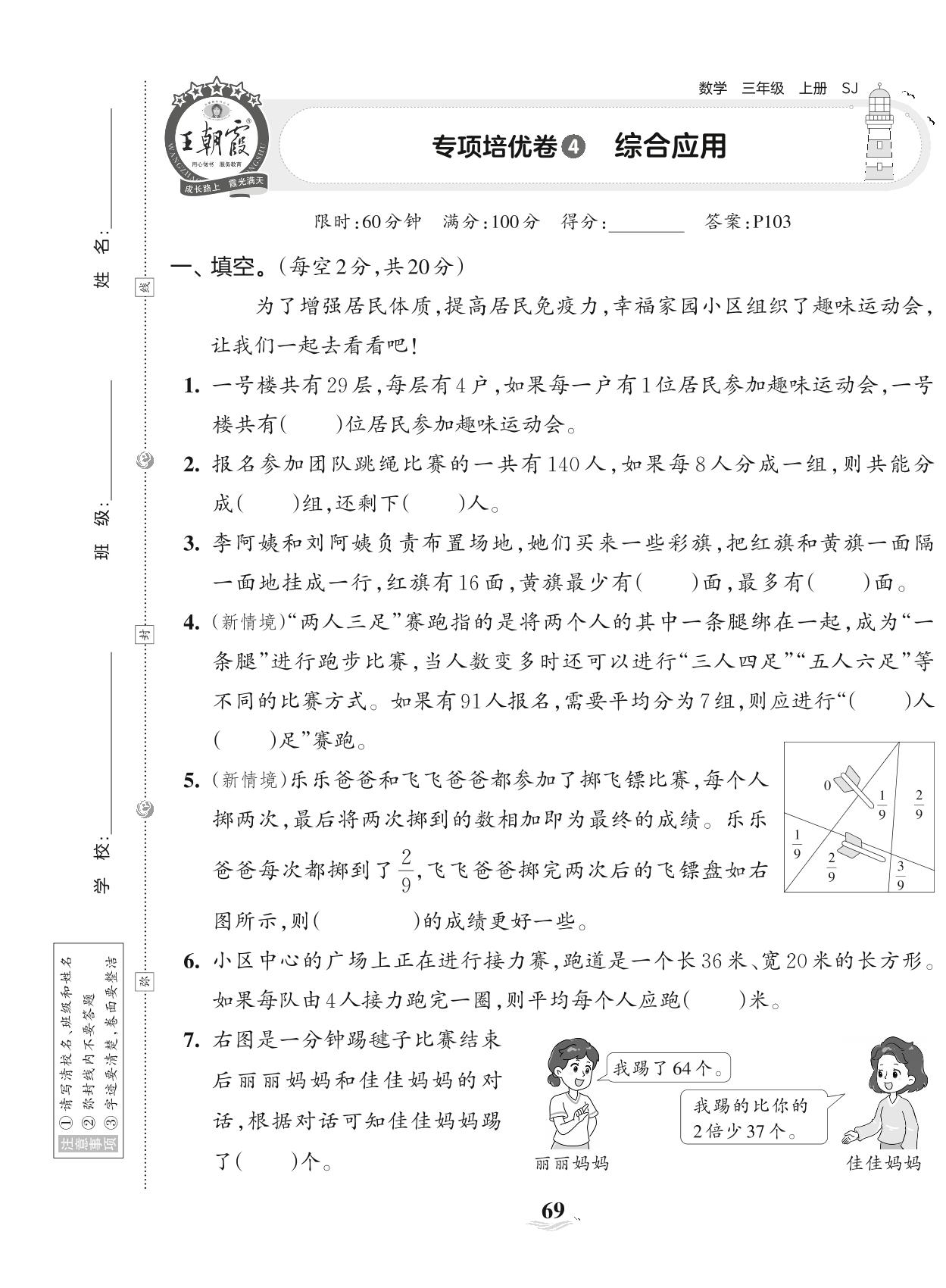 2023上册三年级数学苏教版 专项培优卷4 综合应用