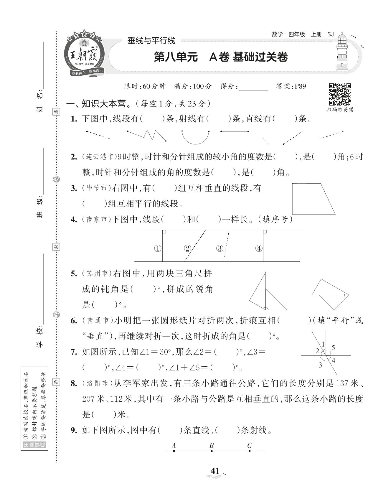 2023上册四年级数学苏教版 第八单元 A卷 基础过关卷