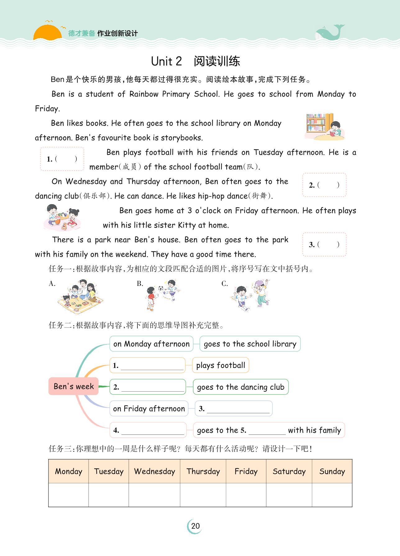 2023上册五年级英语人教PEP版 Unit 2 阅读训练