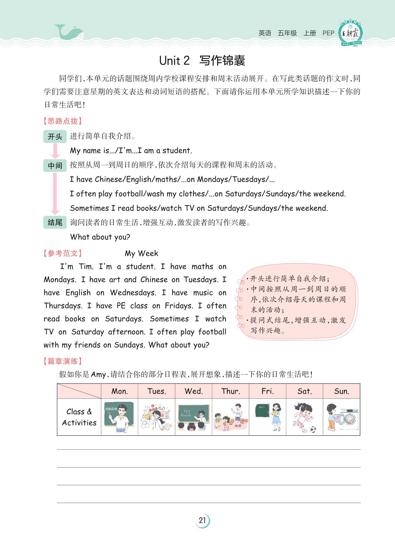 2023上册五年级英语人教PEP版 Unit 2 写作锦囊