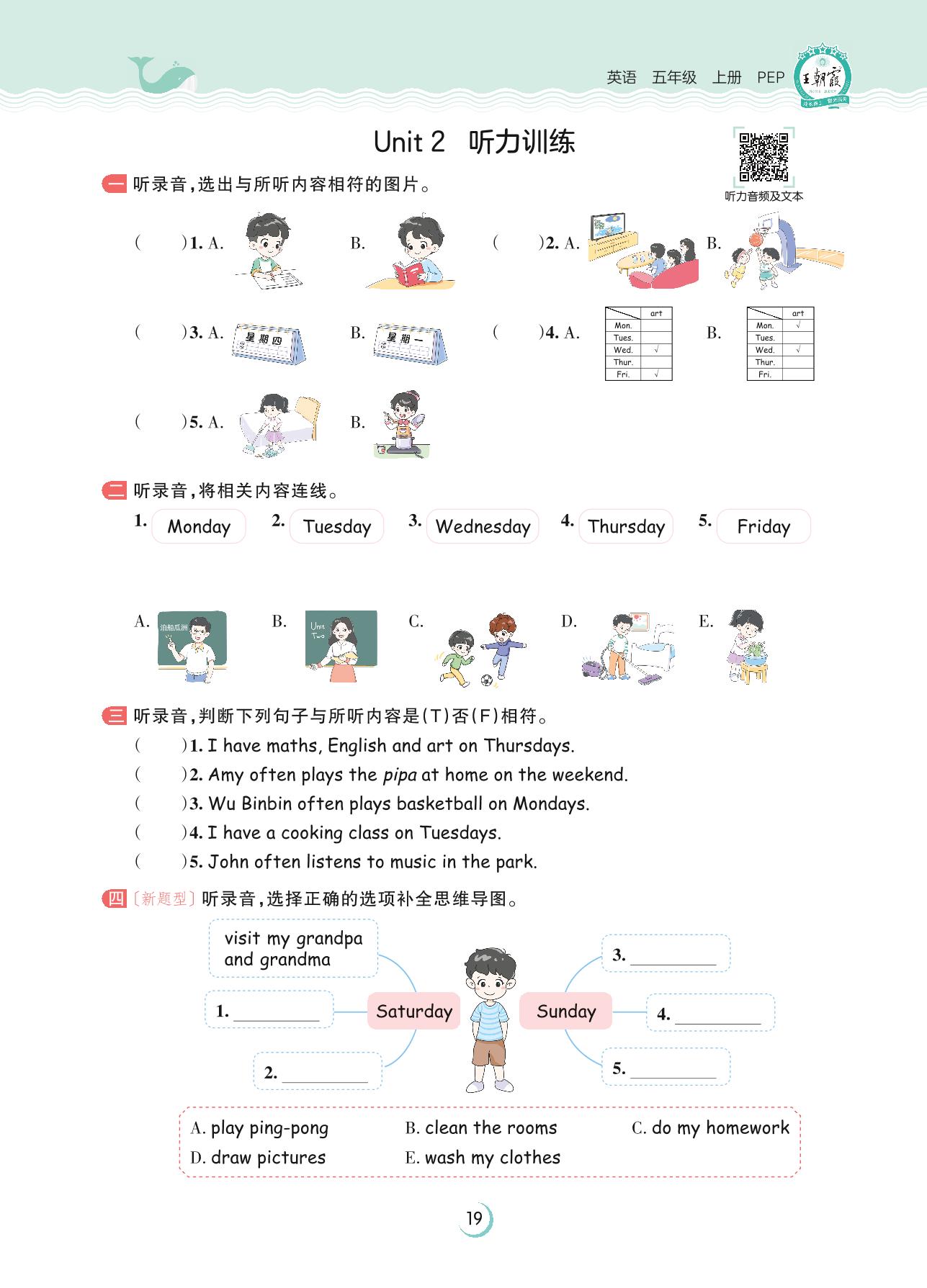 2023上册五年级英语人教PEP版 Unit 2 听力训练