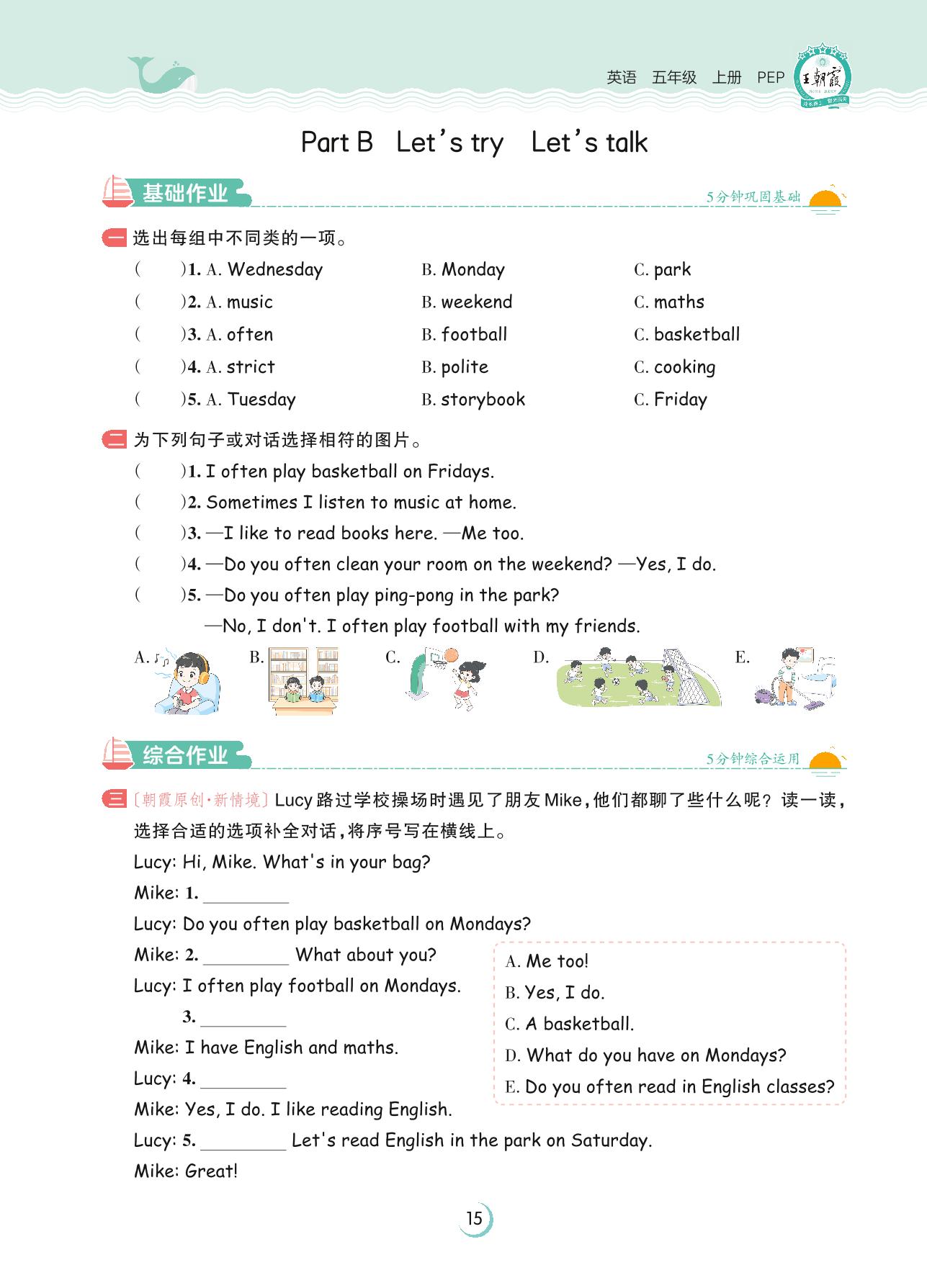 2023上册五年级英语人教PEP版 Unit 2—Part B Let’s try Let’s talk