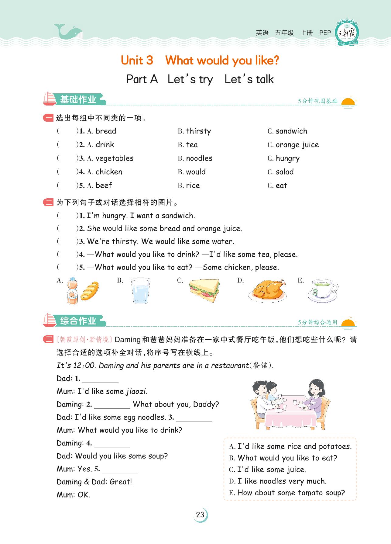 2023上册五年级英语人教PEP版 Unit 3—Part A Let’s try Let’s talk