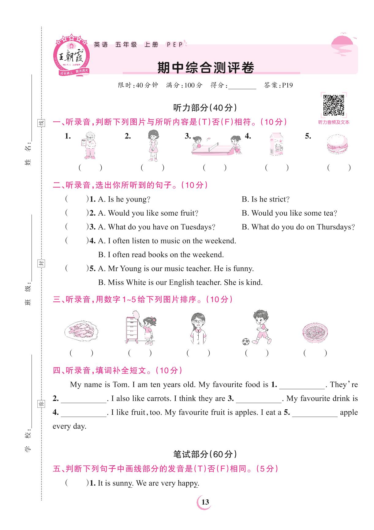2023上册五年级英语人教PEP版 期中综合测评卷