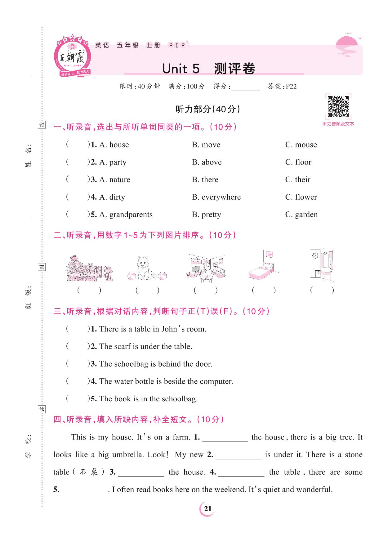 2023上册五年级英语人教PEP版 Unit 5 测评卷