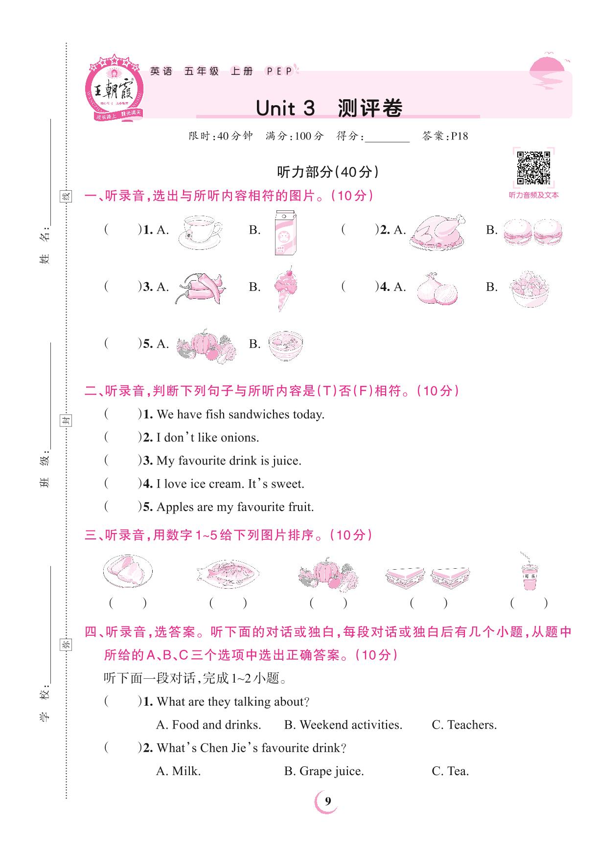 五年级英语人教PEP版(三起始)上册单元卷