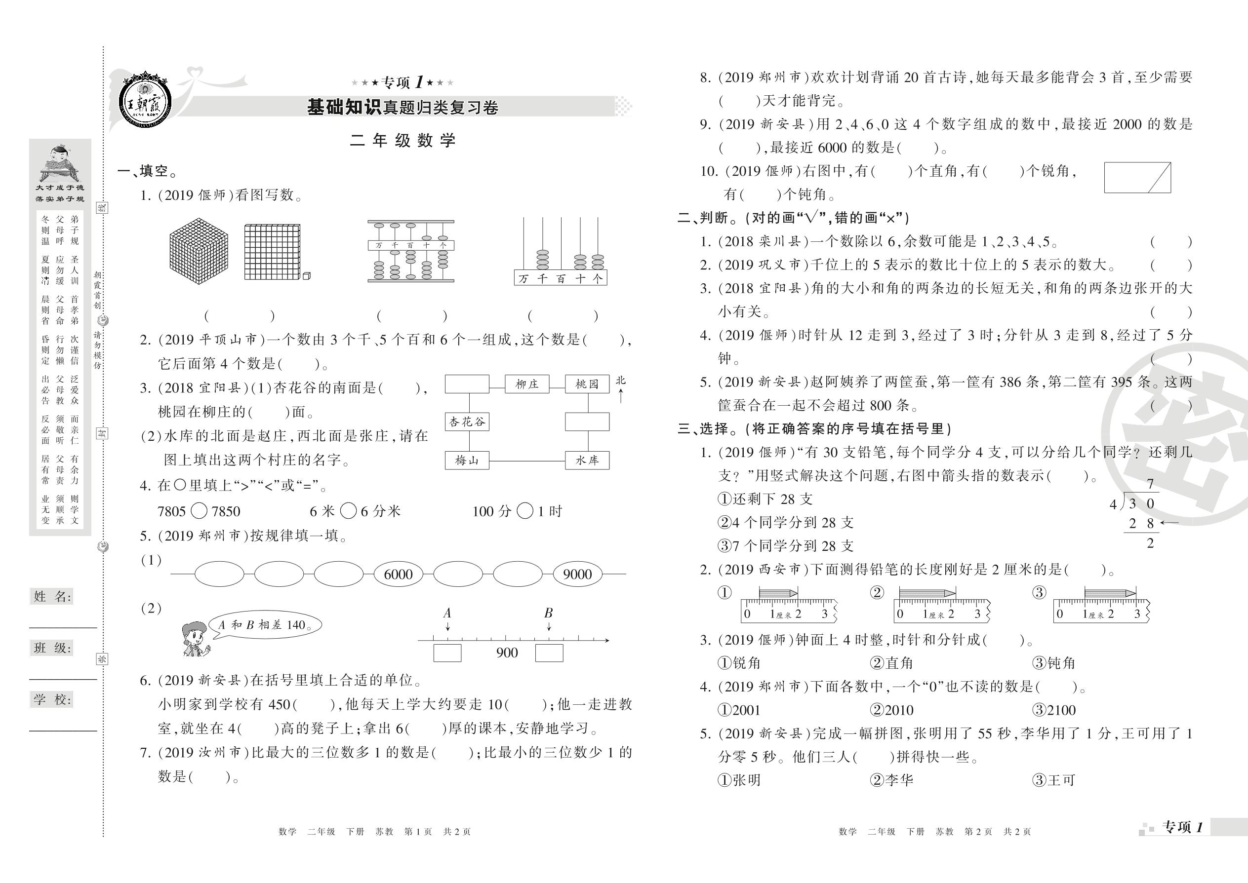 王朝霞期末专项卷——基础知识、计算真题归类复习卷二年级下册数学(苏教版)_R21080391259【0】