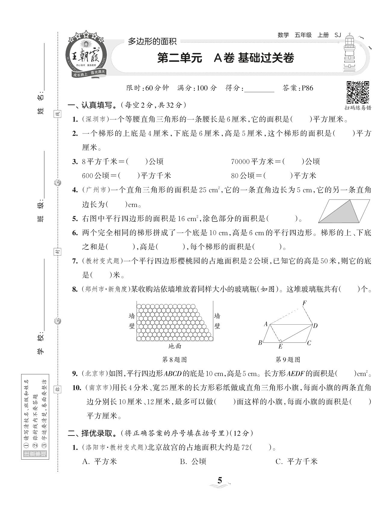 2023上册五年级数学苏教版 第二单元 A卷 基础过关卷