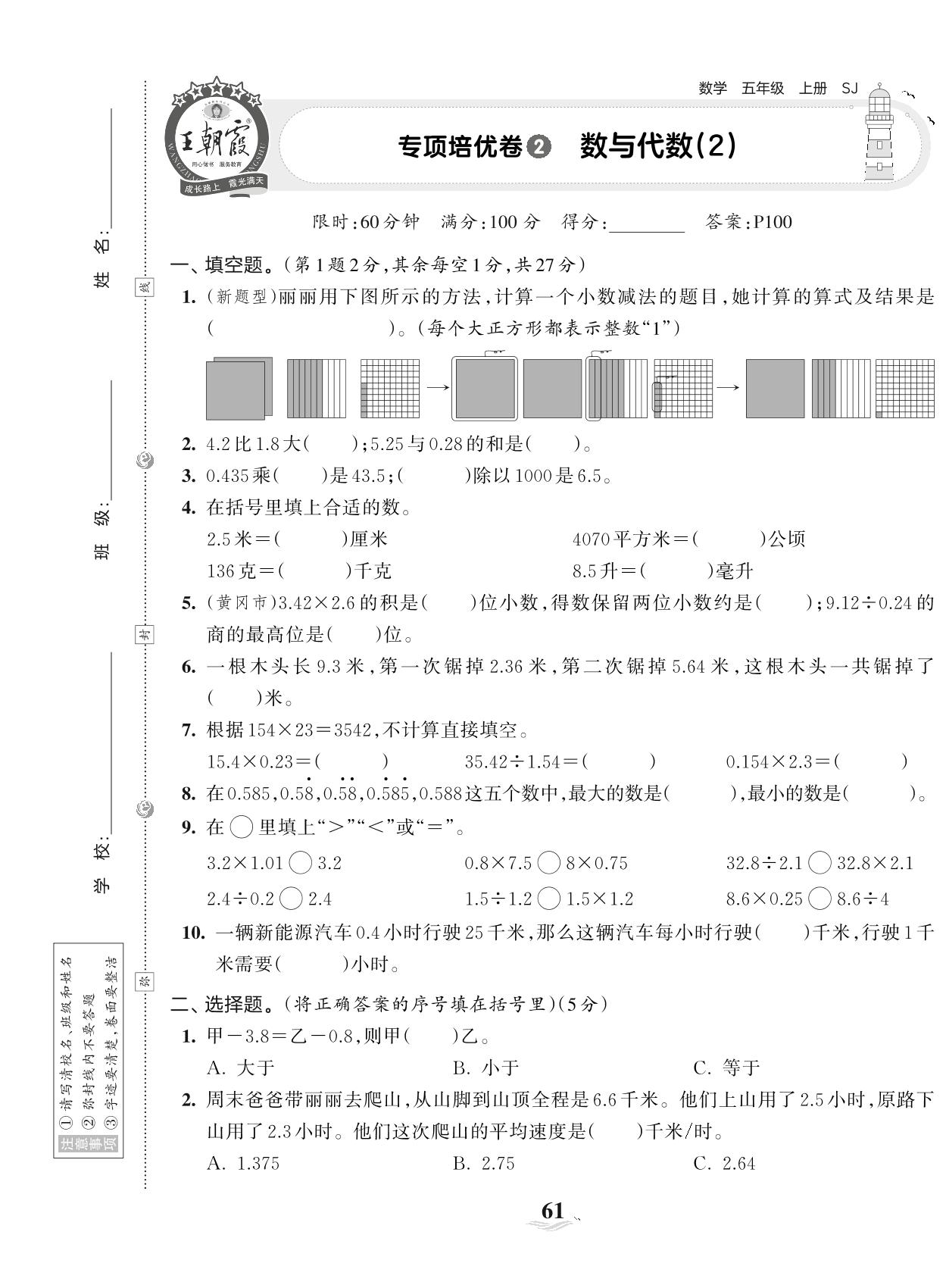 五年级数学苏教版上册专项卷
