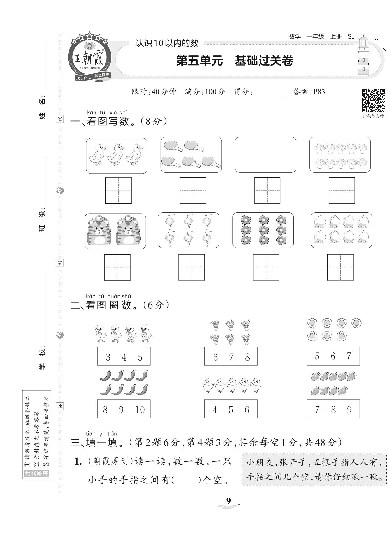 2023上册一年级数学苏教版 第五单元 基础过关卷