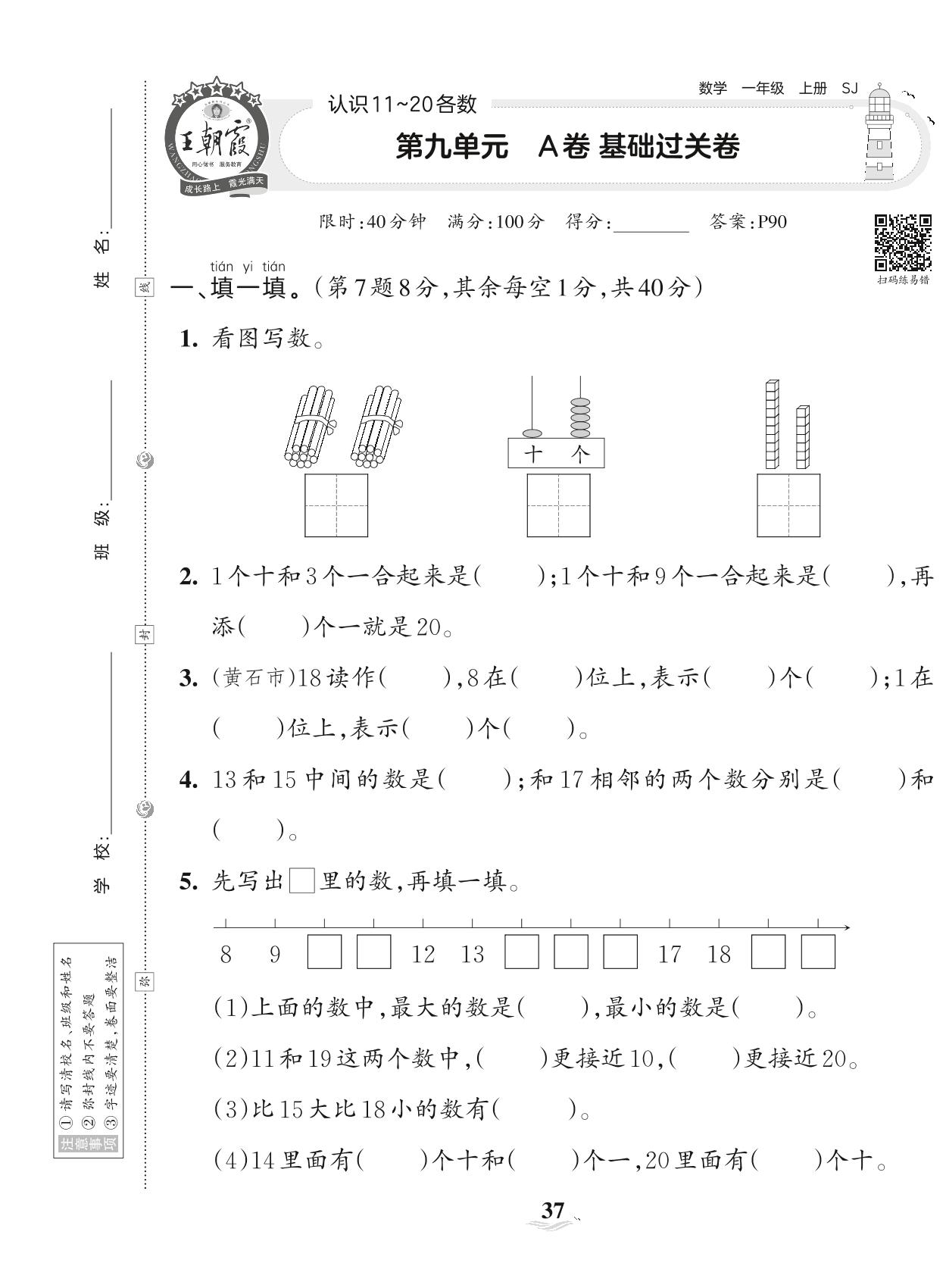 2023上册一年级数学苏教版 第九单元 A卷 基础过关卷