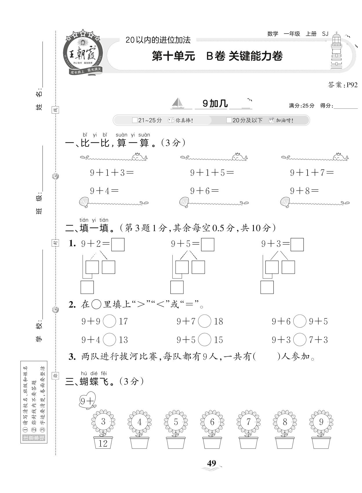 2023上册一年级数学苏教版 第十单元 B卷 关键能力卷