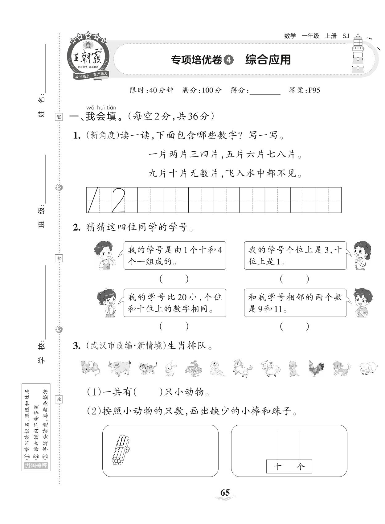 2023上册一年级数学苏教版 专项培优卷4 综合应用