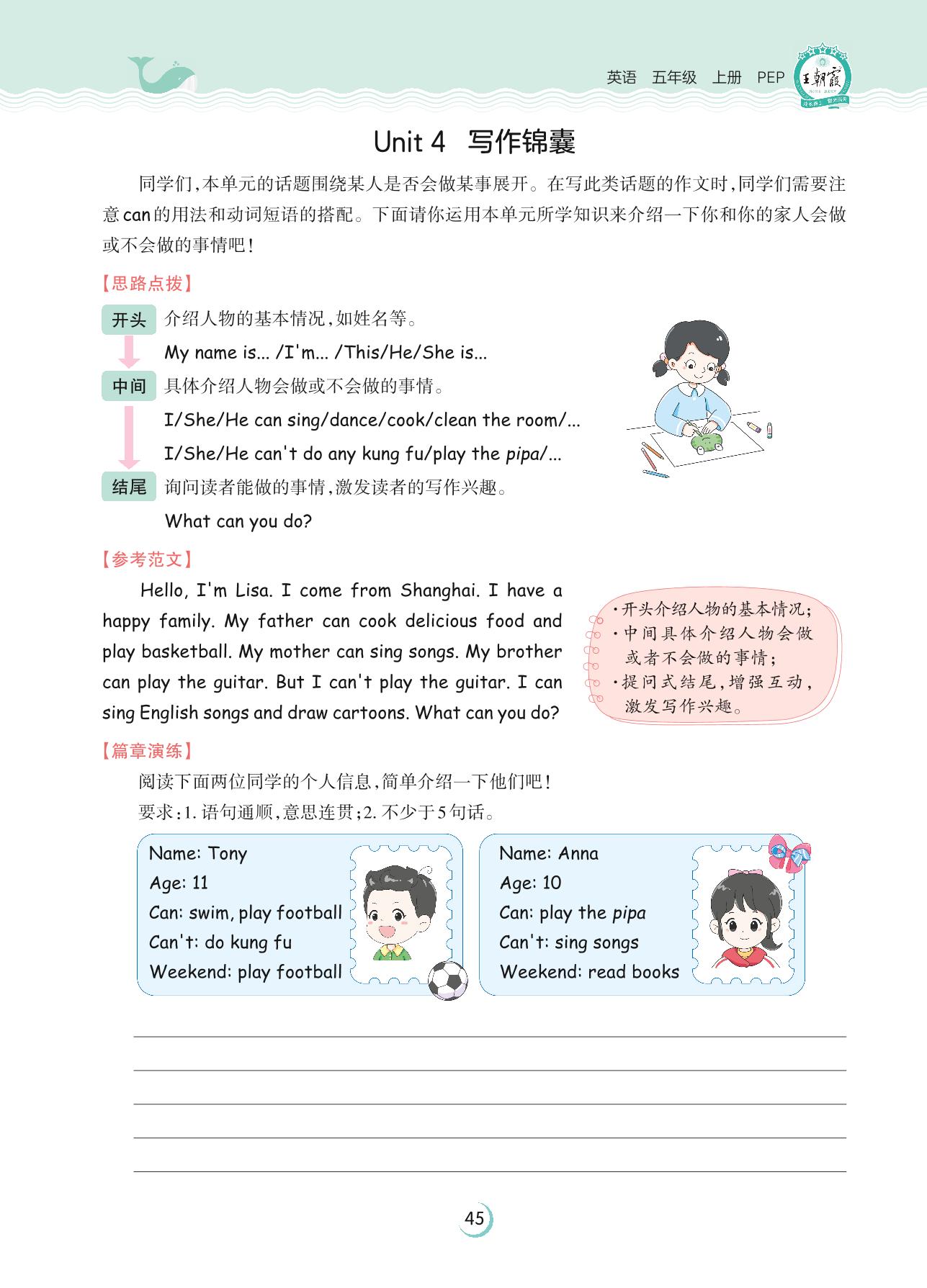 2023上册五年级英语人教PEP版 Unit 4 写作锦囊