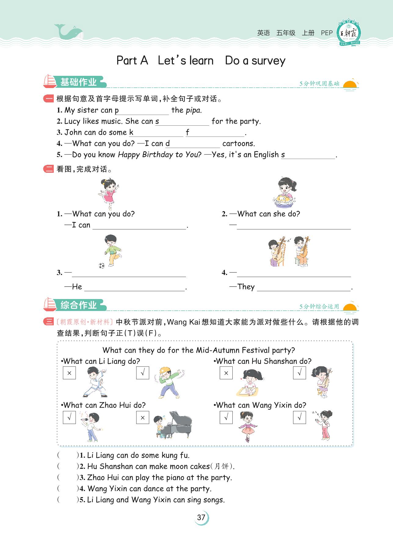2023上册五年级英语人教PEP版 Unit 4—Part A Let’s learn Do a survey