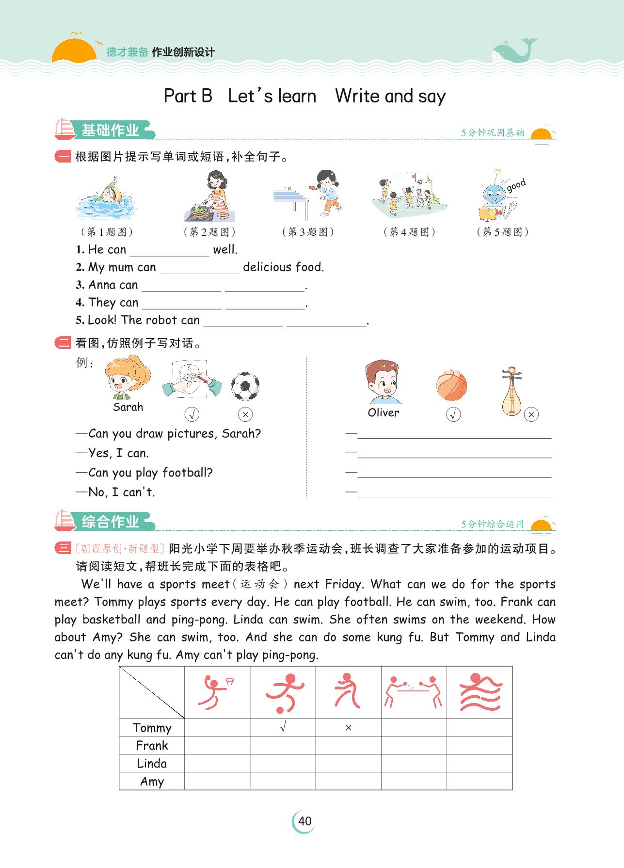2023上册五年级英语人教PEP版 Unit 4—Part B Let’s learn Write and say