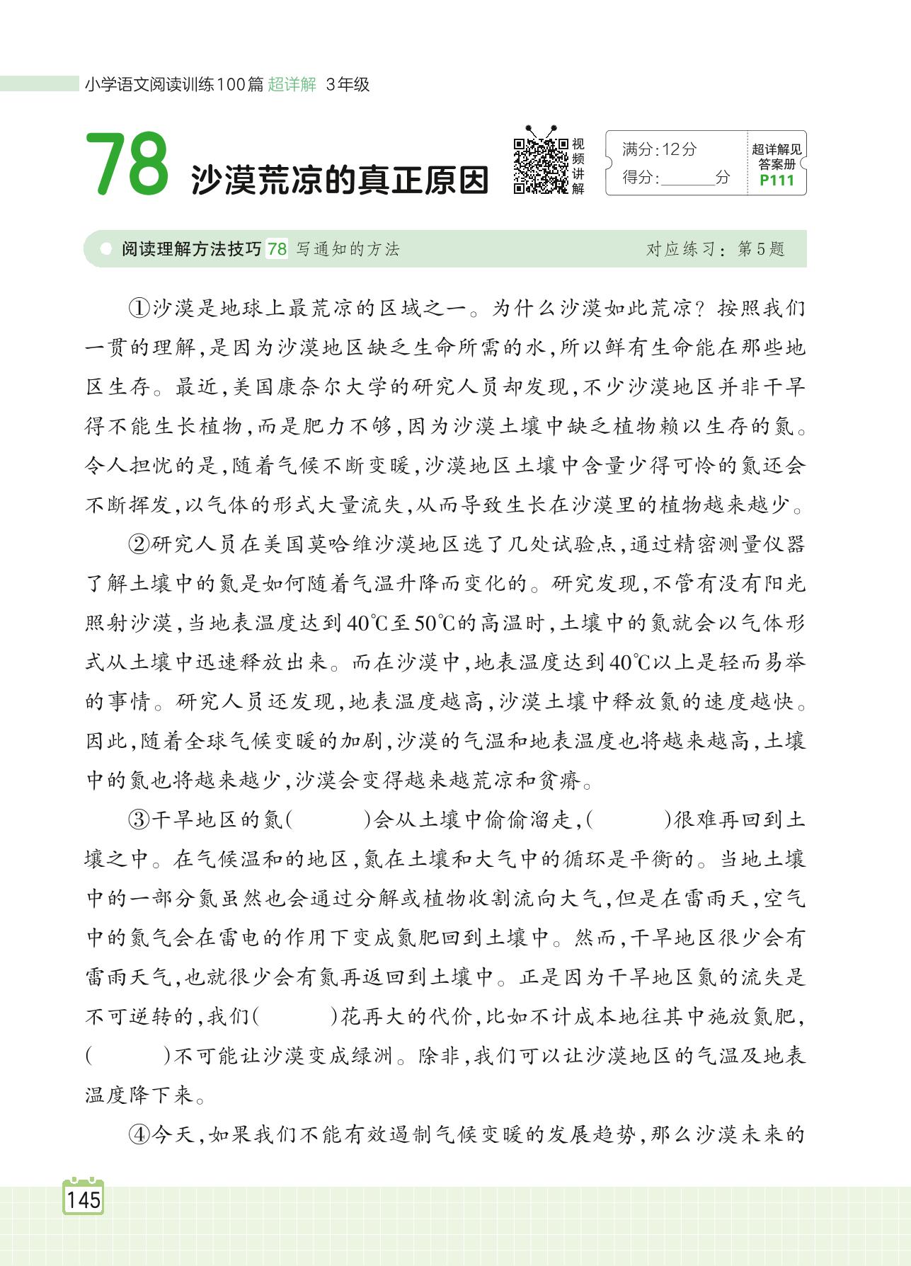 2024全一册三年级语文人教版 专题六 科普文 78 沙漠荒凉的真正原因