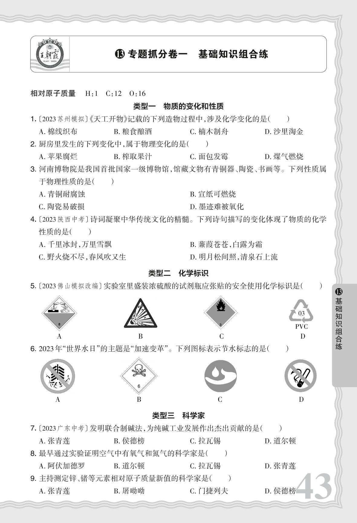河南中考专题抓分卷一 基础知识组合练·化学【13】