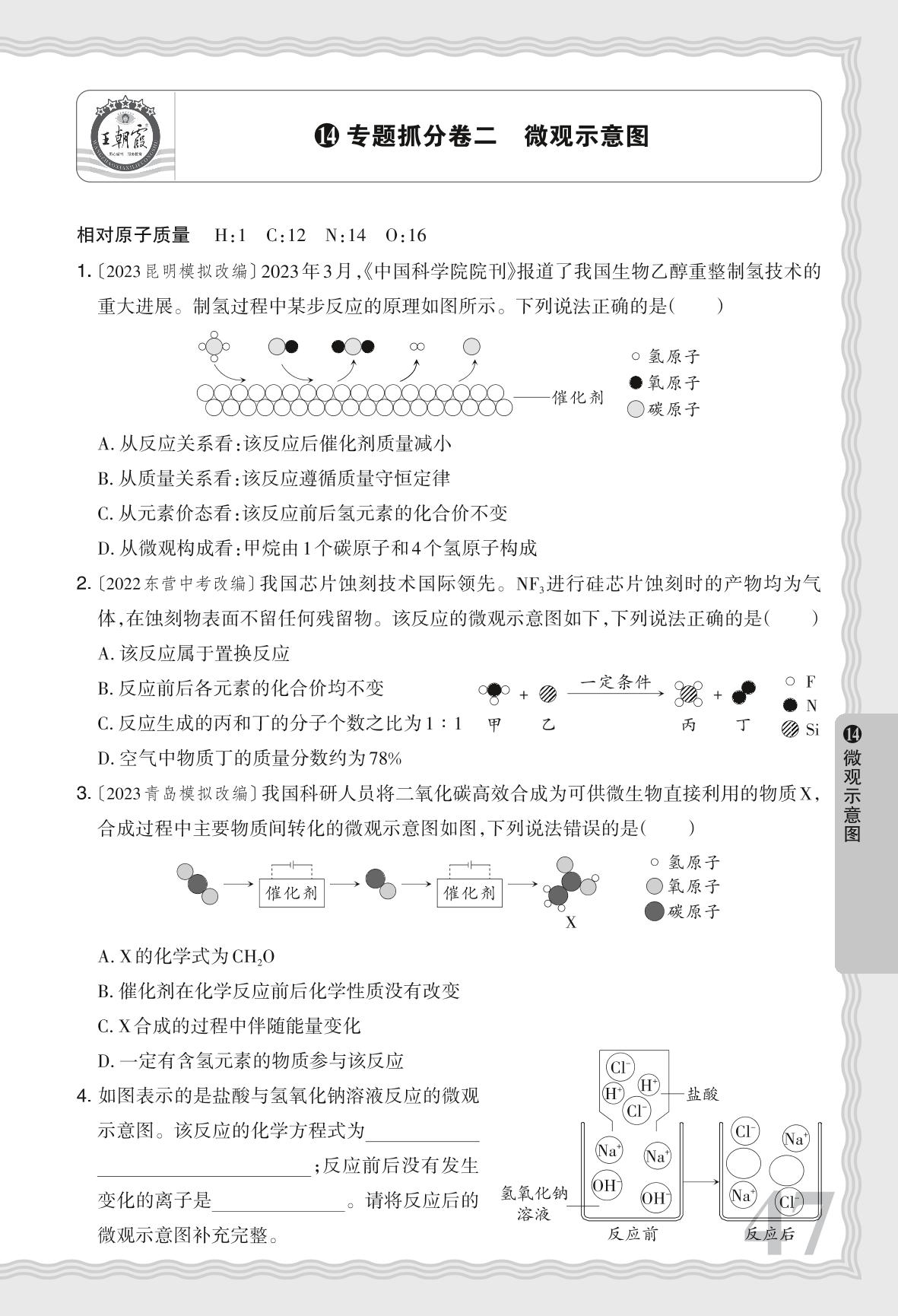 河南中考专题抓分卷二 微观示意图·化学【14】
