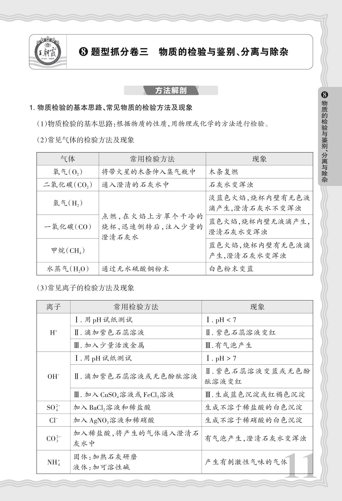 河南中考题型抓分卷三 物质的检验与鉴别、分离与除杂·化学【8】