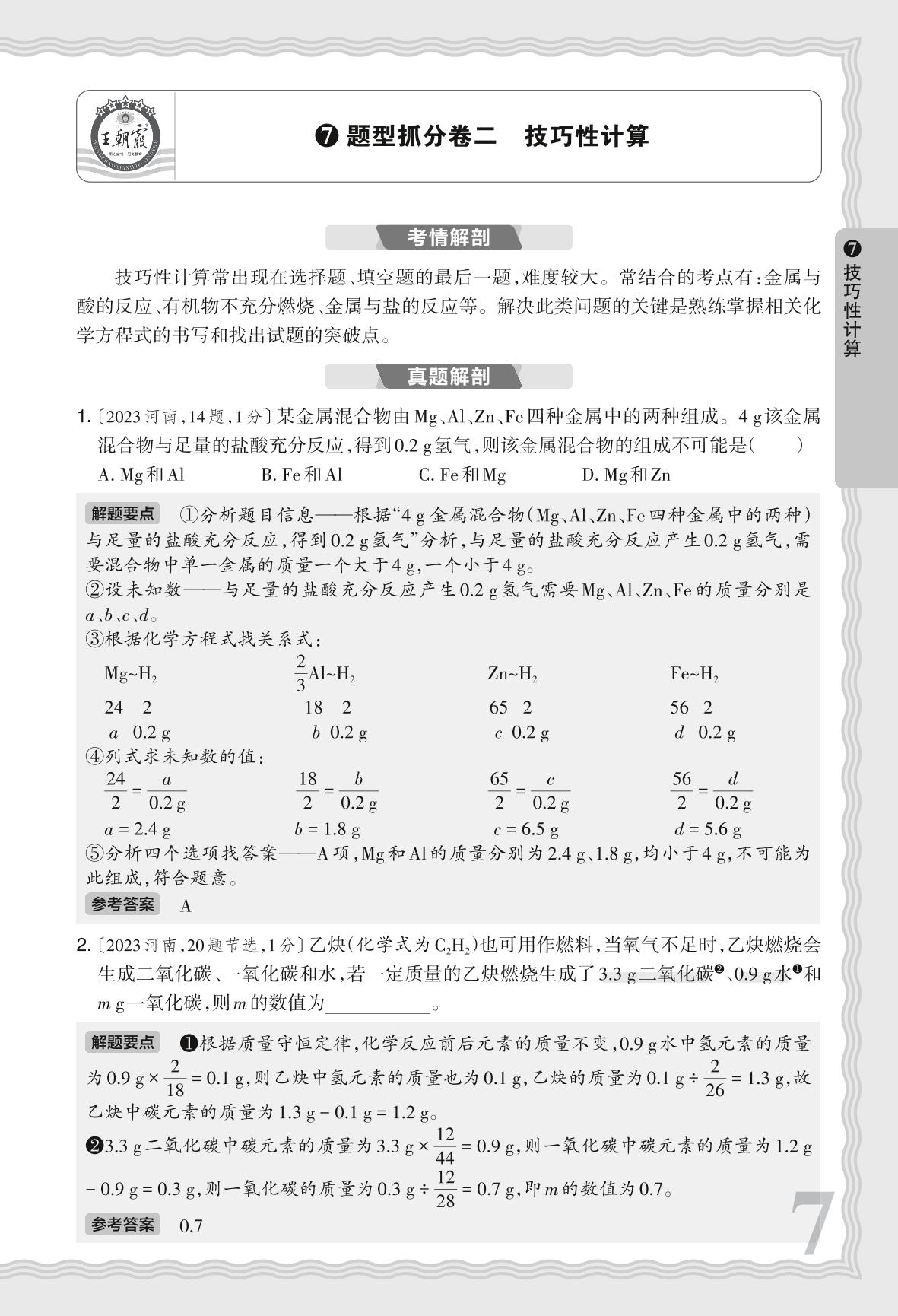 河南中考题型抓分卷二 技巧性计算·化学【7】