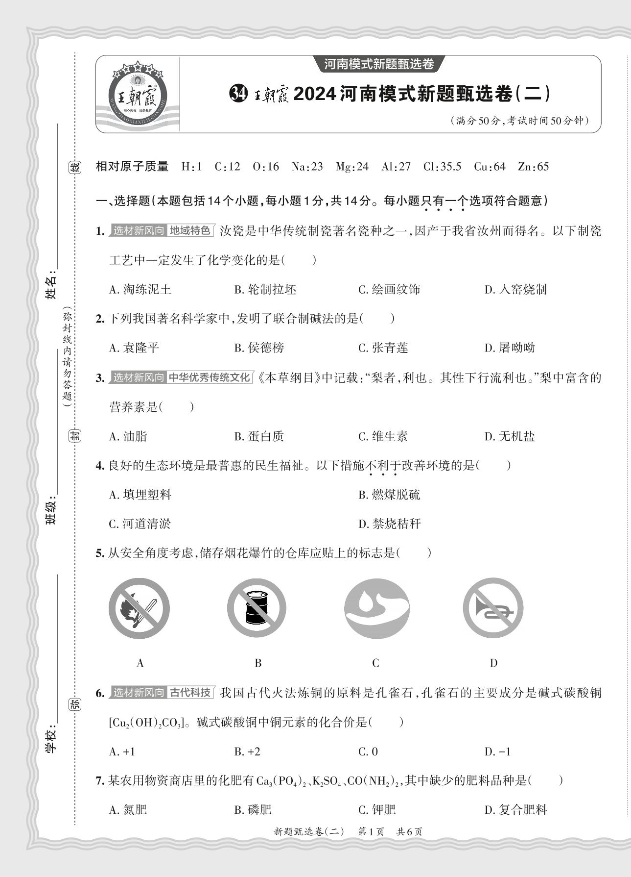 王朝霞2024河南模式新题甄选卷(二)·中考化学【34】