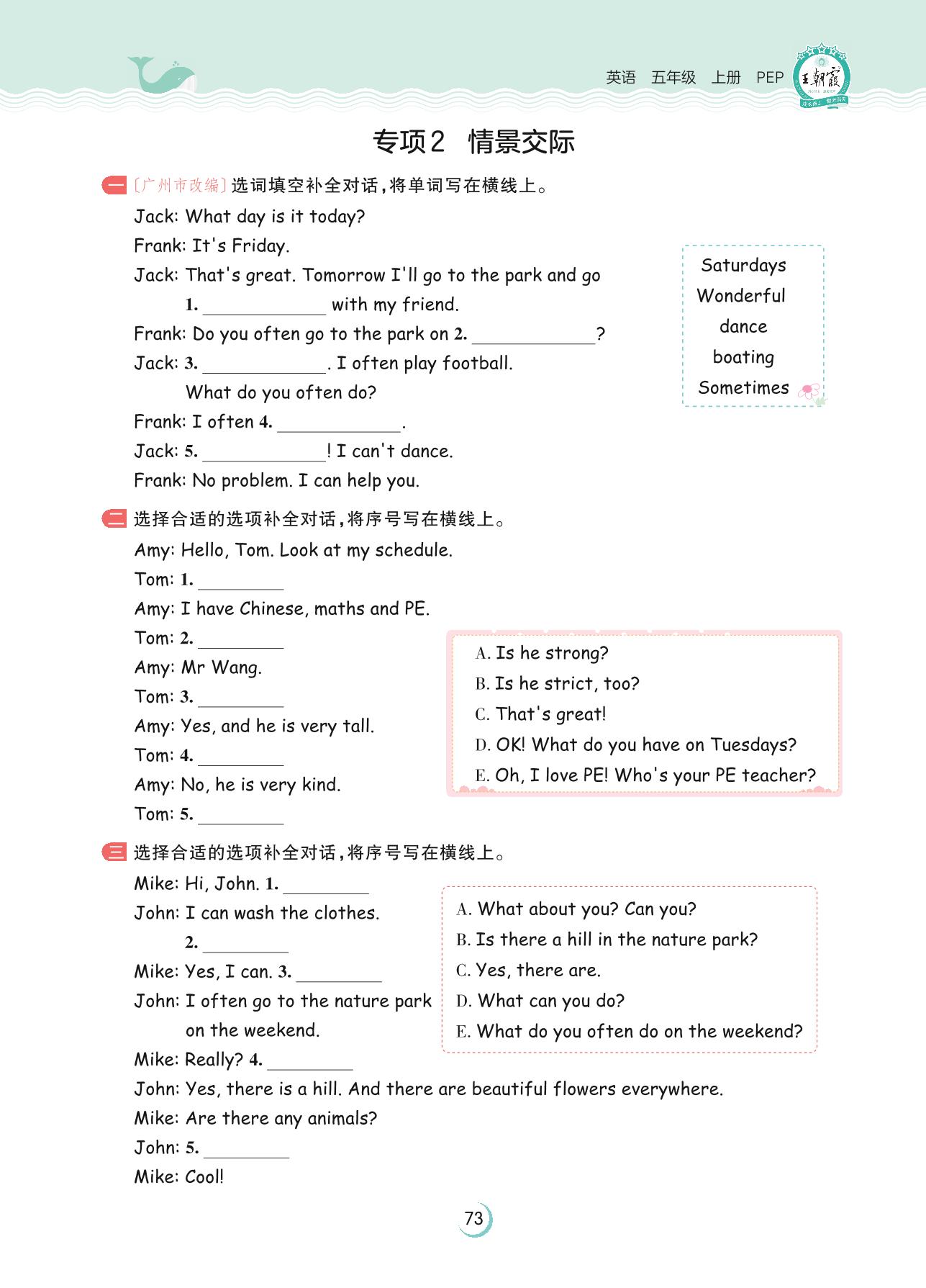 2023上册五年级英语人教PEP版 专项2 情景交际