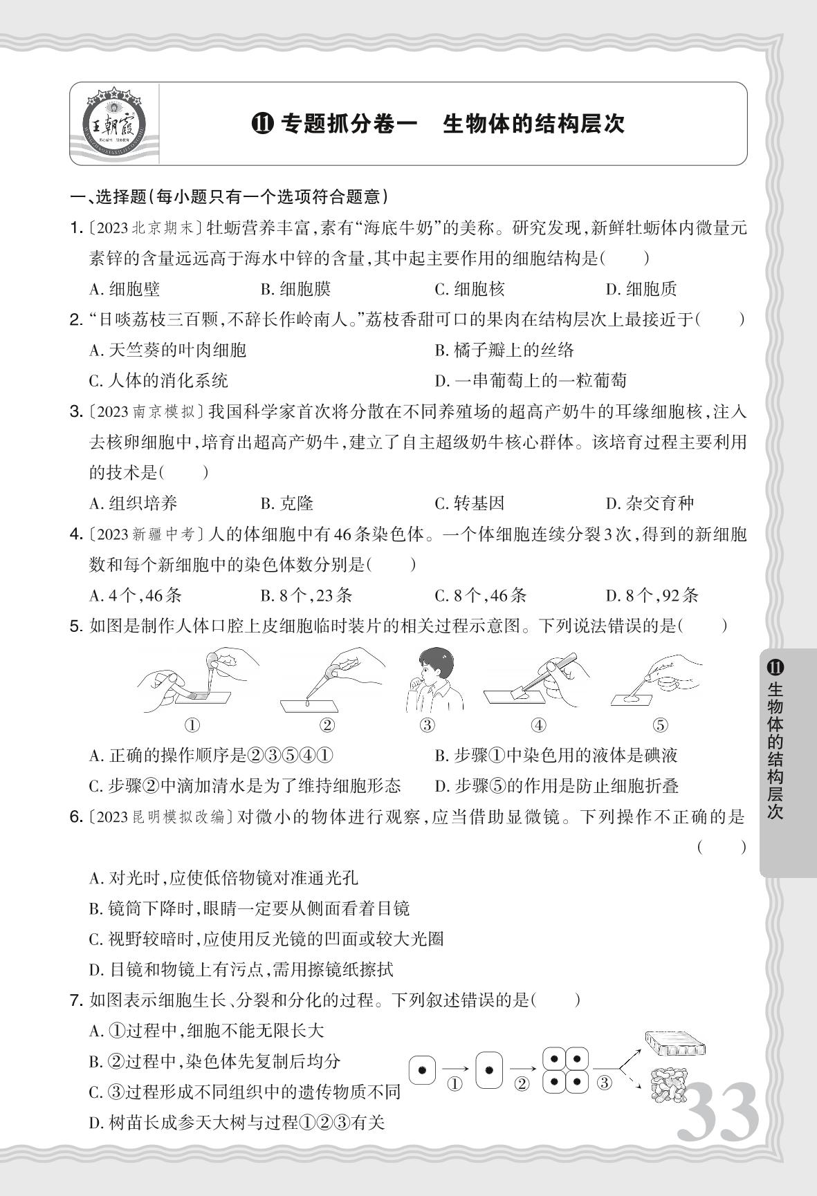 河南中考专题抓分卷一 生物体的结构层次·生物【11】