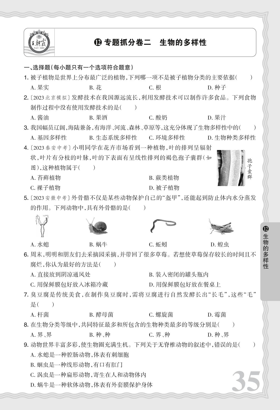 河南中考专题抓分卷二 生物的多样性·生物【12】