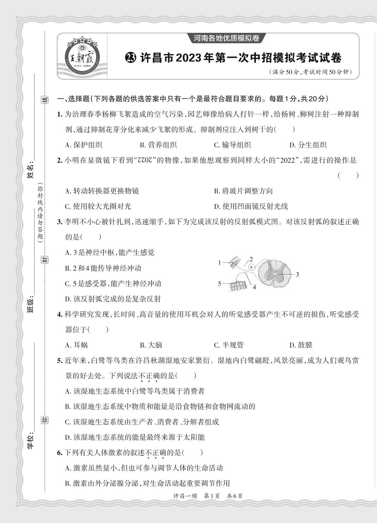 许昌市2023年第一次中招模拟考试试卷·生物【23】