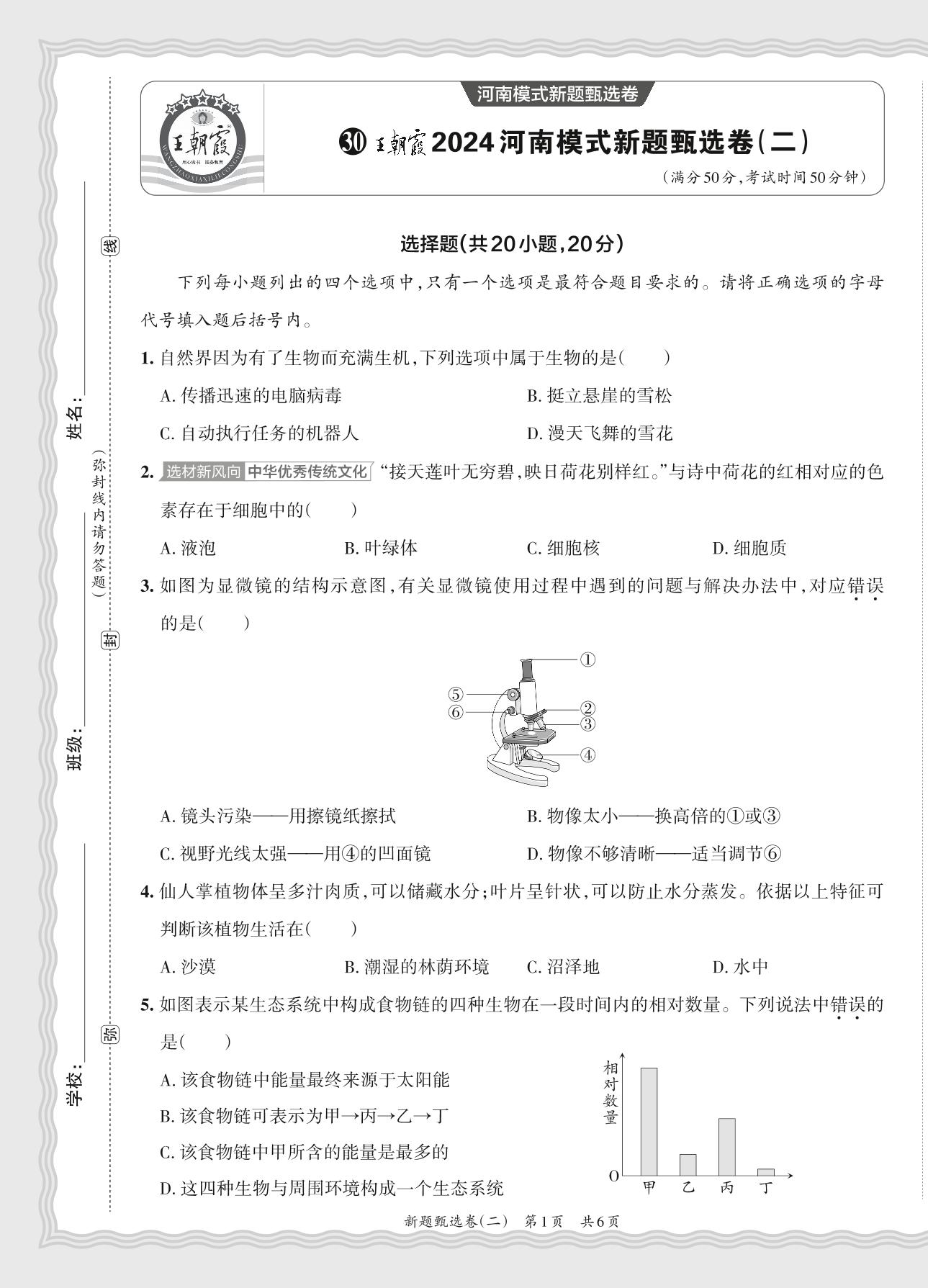 2024河南模式新题甄选卷(二)·中考生物【30】