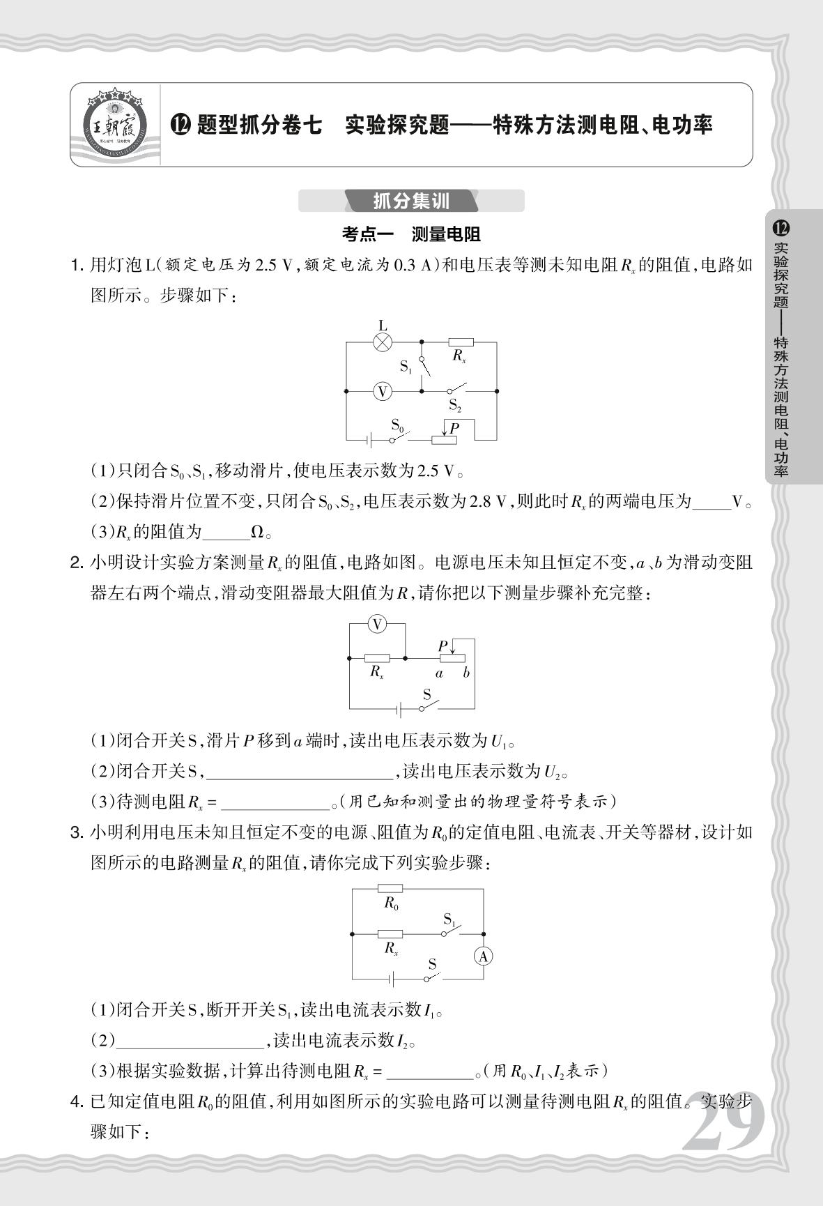河南中考题型抓分卷七 实验探究题——特殊方法测电阻、电功率·物理【12】