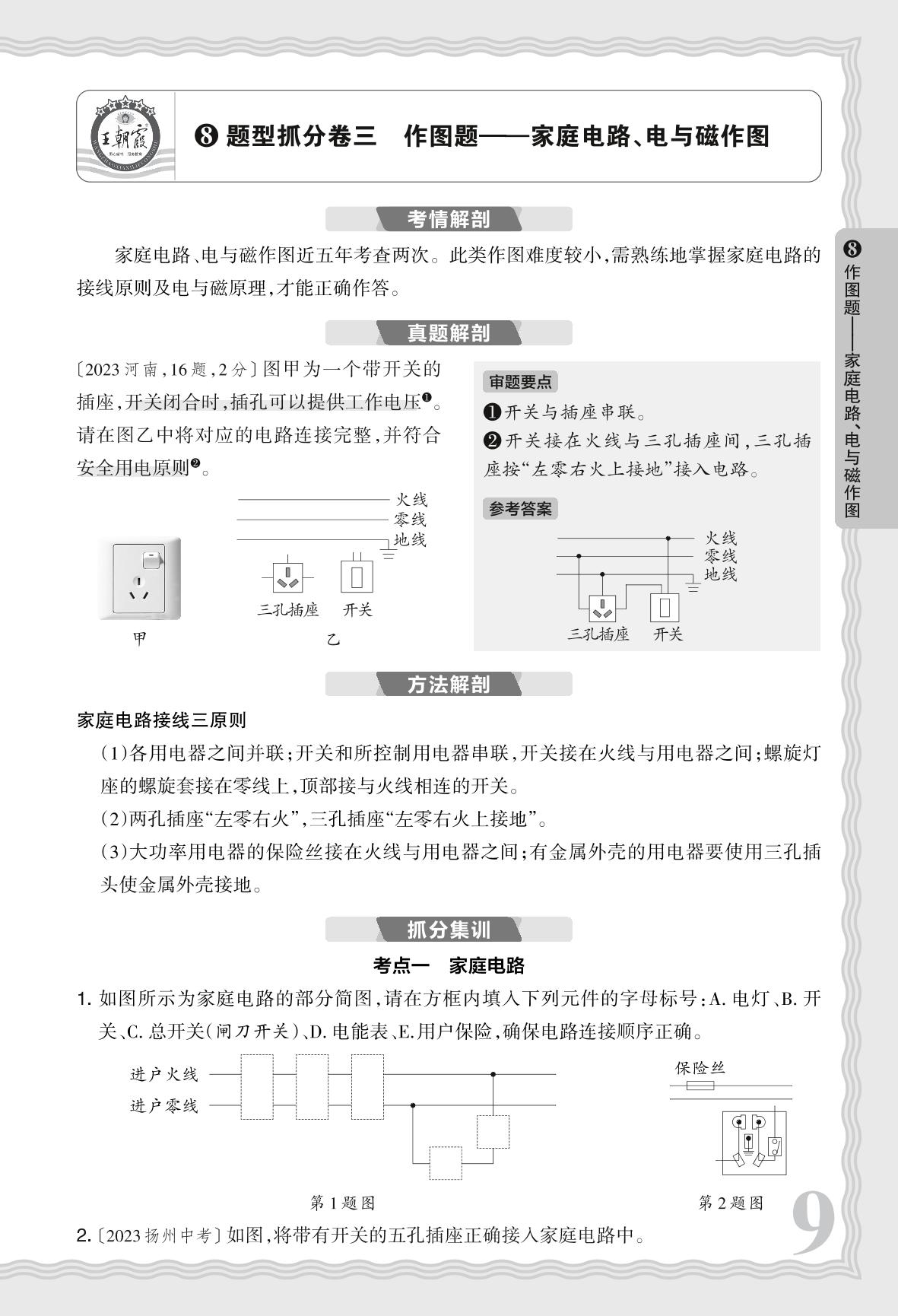 河南中考题型抓分卷三 作图题——家庭电路、电与磁作图·物理【8】
