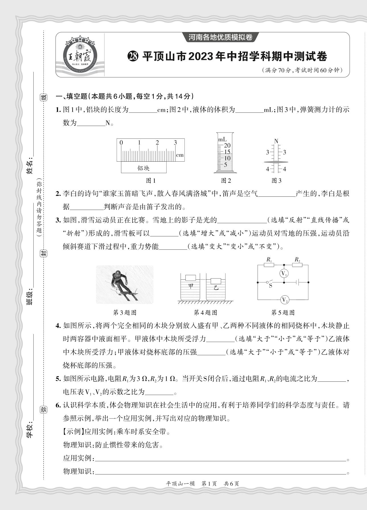 平顶山市2023年中招学科期中测试卷·物理【28】