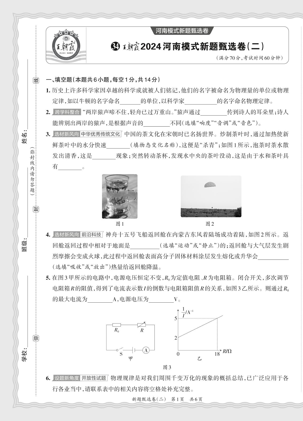 2024河南模式新题甄选卷(二)·中考物理【34】