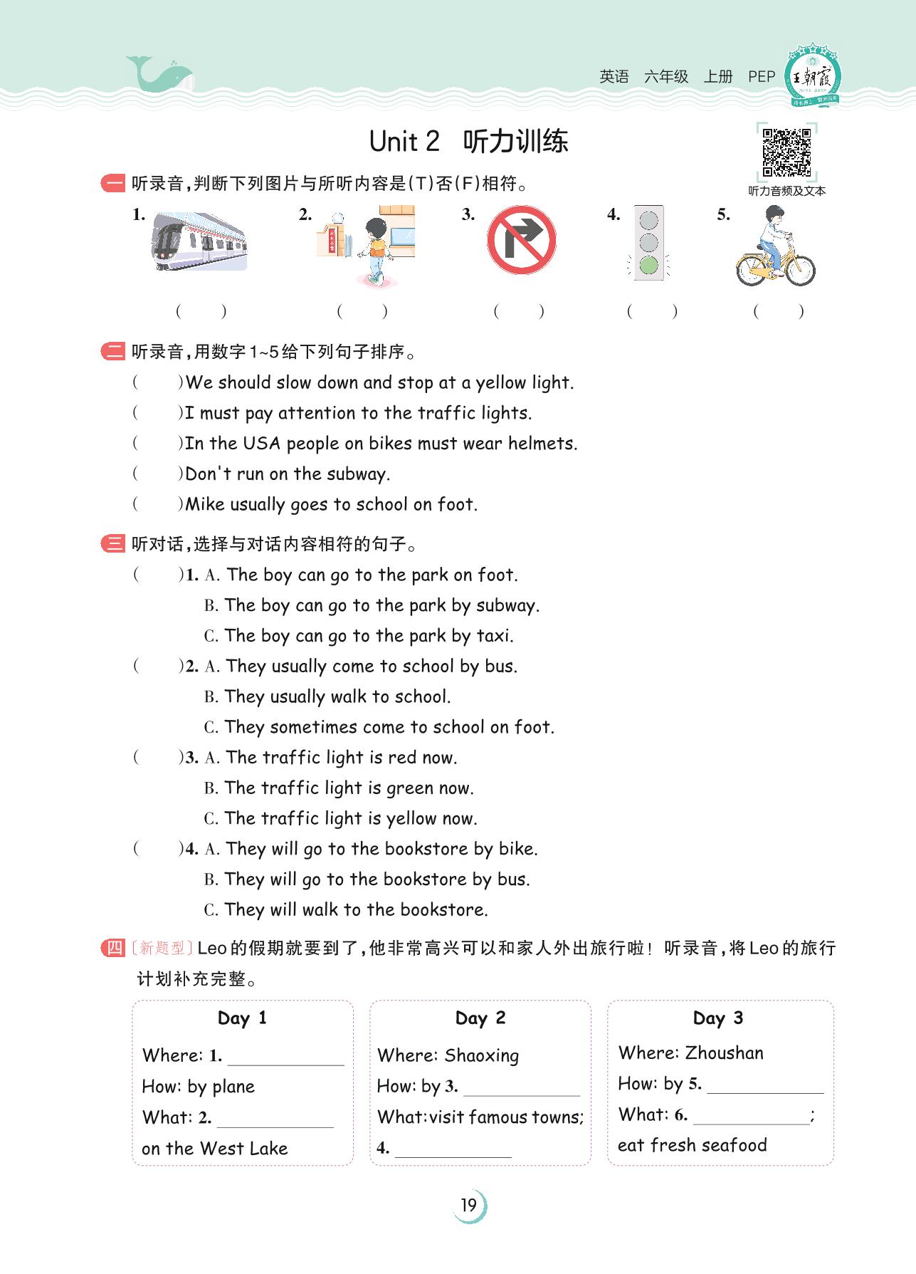 2023上册六年级英语人教PEP版 Unit 2 听力训练