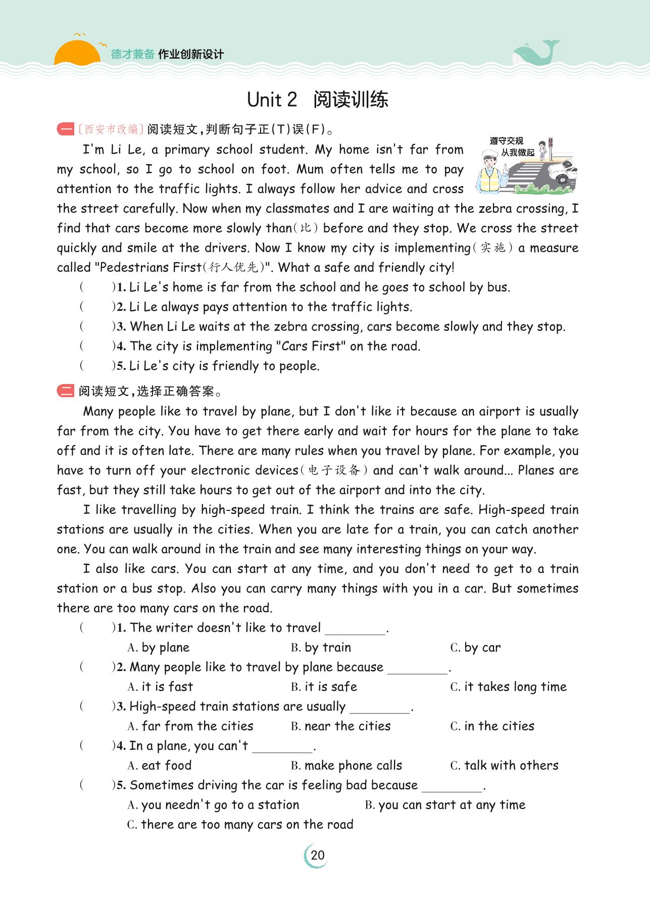 2023上册六年级英语人教PEP版 Unit 2 阅读训练