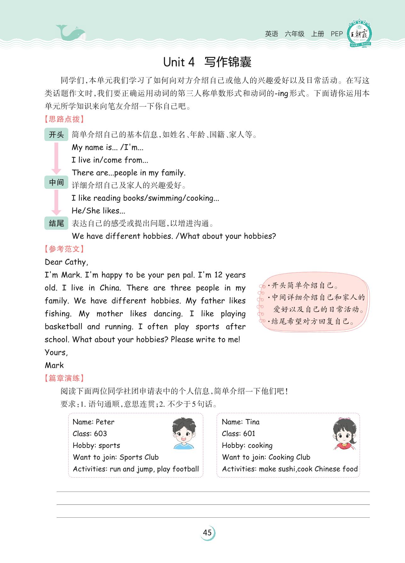2023上册六年级英语人教PEP版 Unit 4 写作锦囊