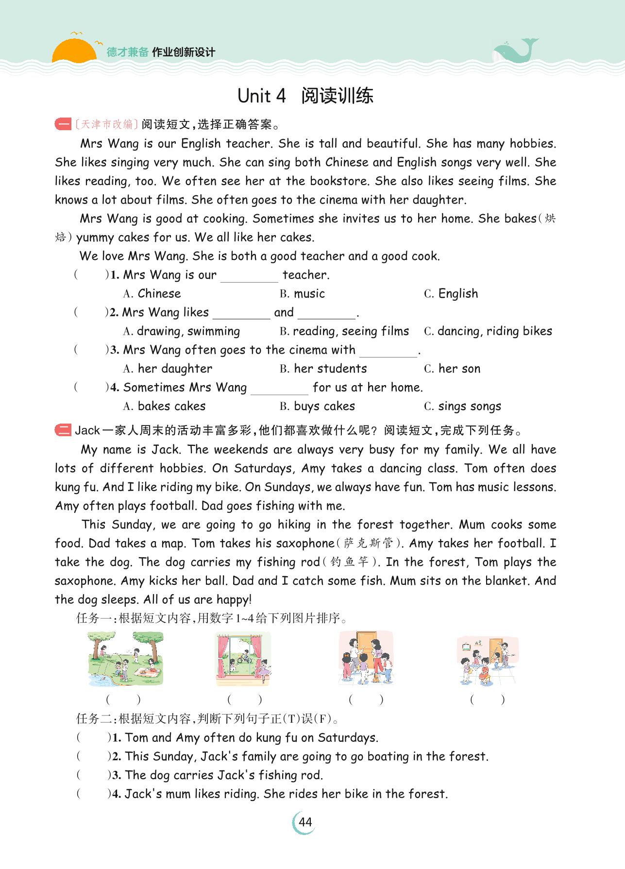 2023上册六年级英语人教PEP版 Unit 4 阅读训练