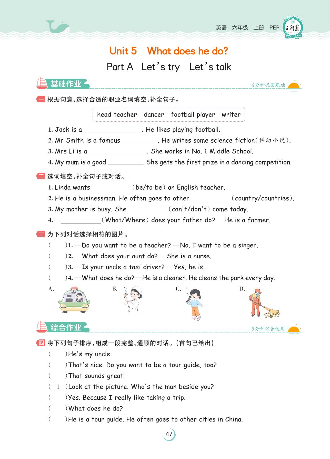 2023上册六年级英语人教PEP版 Unit 5—Part A Let’s try Let’s talk