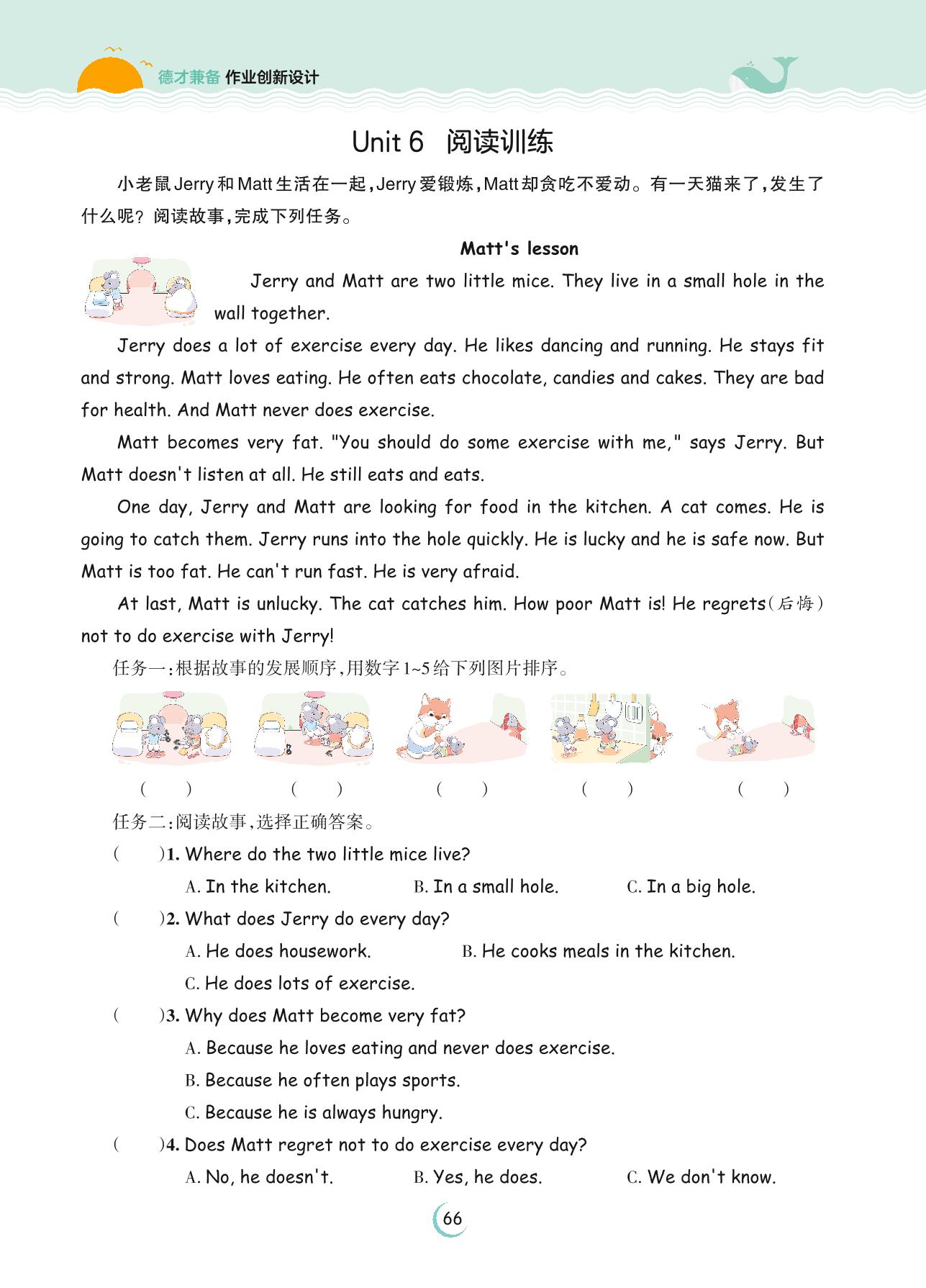 2023上册六年级英语人教PEP版 Unit 6 阅读训练