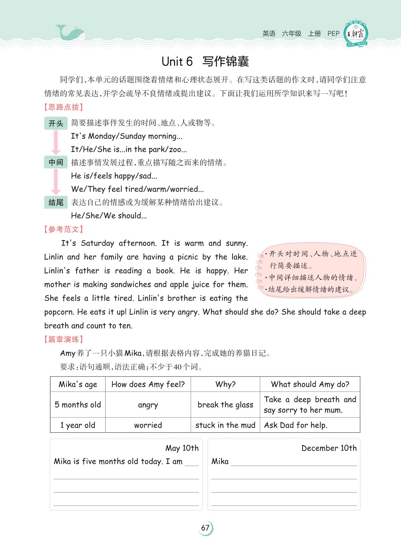 2023上册六年级英语人教PEP版 Unit 6 写作锦囊
