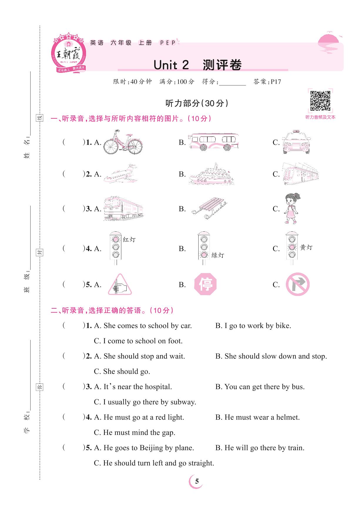 2023上册六年级英语人教PEP版 Unit 2 测评卷
