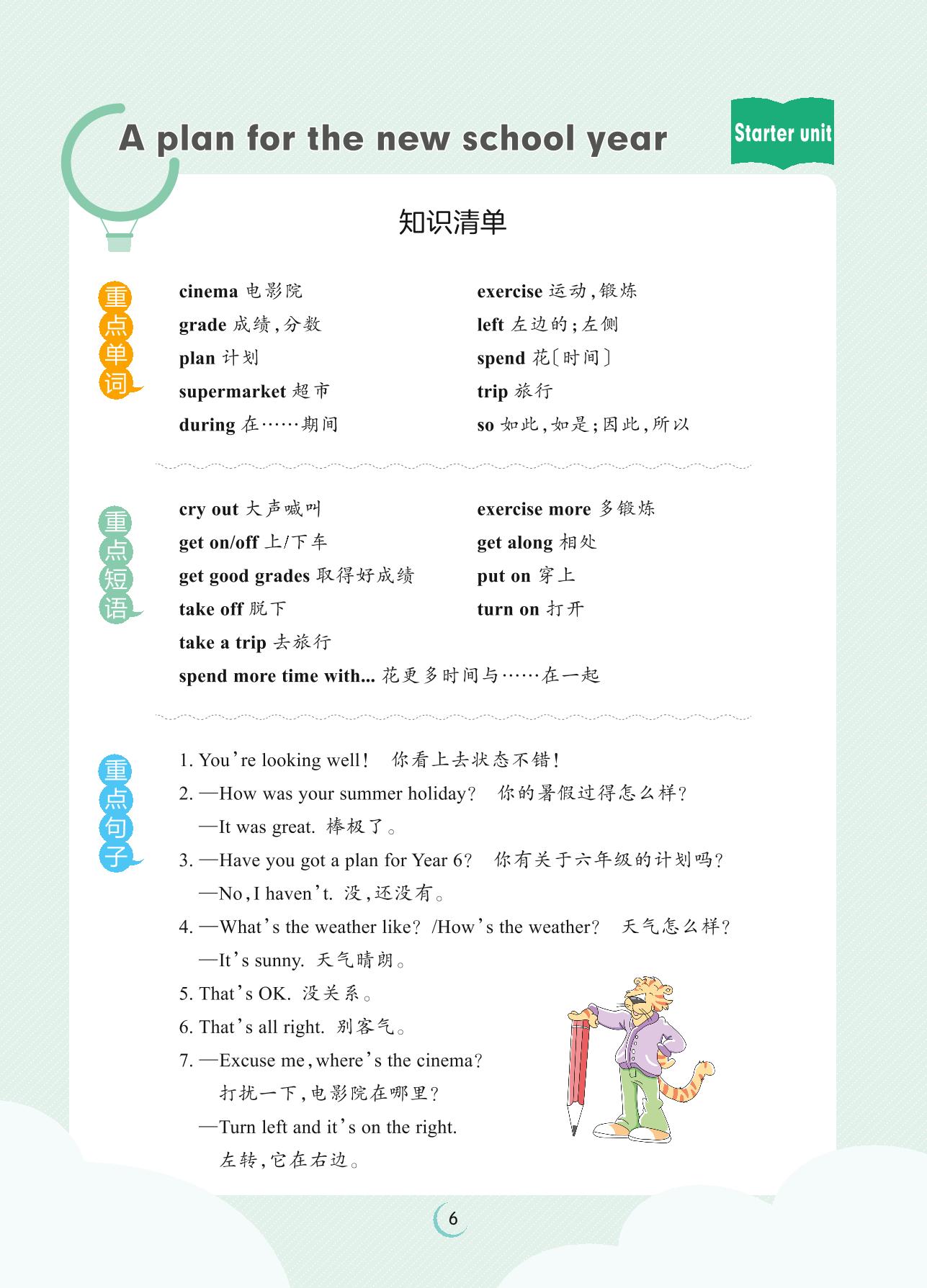 2023上册六年级英语剑桥版 Starter unit 知识清单